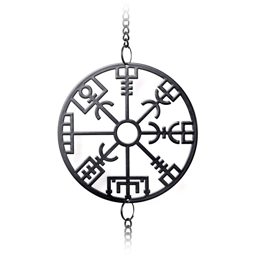 Enjoy your home on Midgard with this wind chime displaying the runic abbreviations of the nine realms of the Viking world.